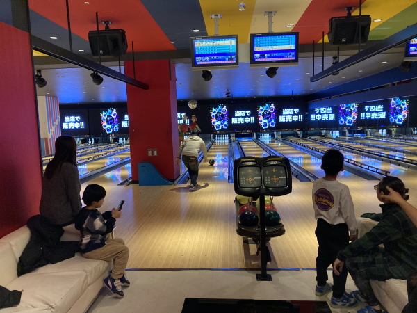 家族でボウリングを楽しむ